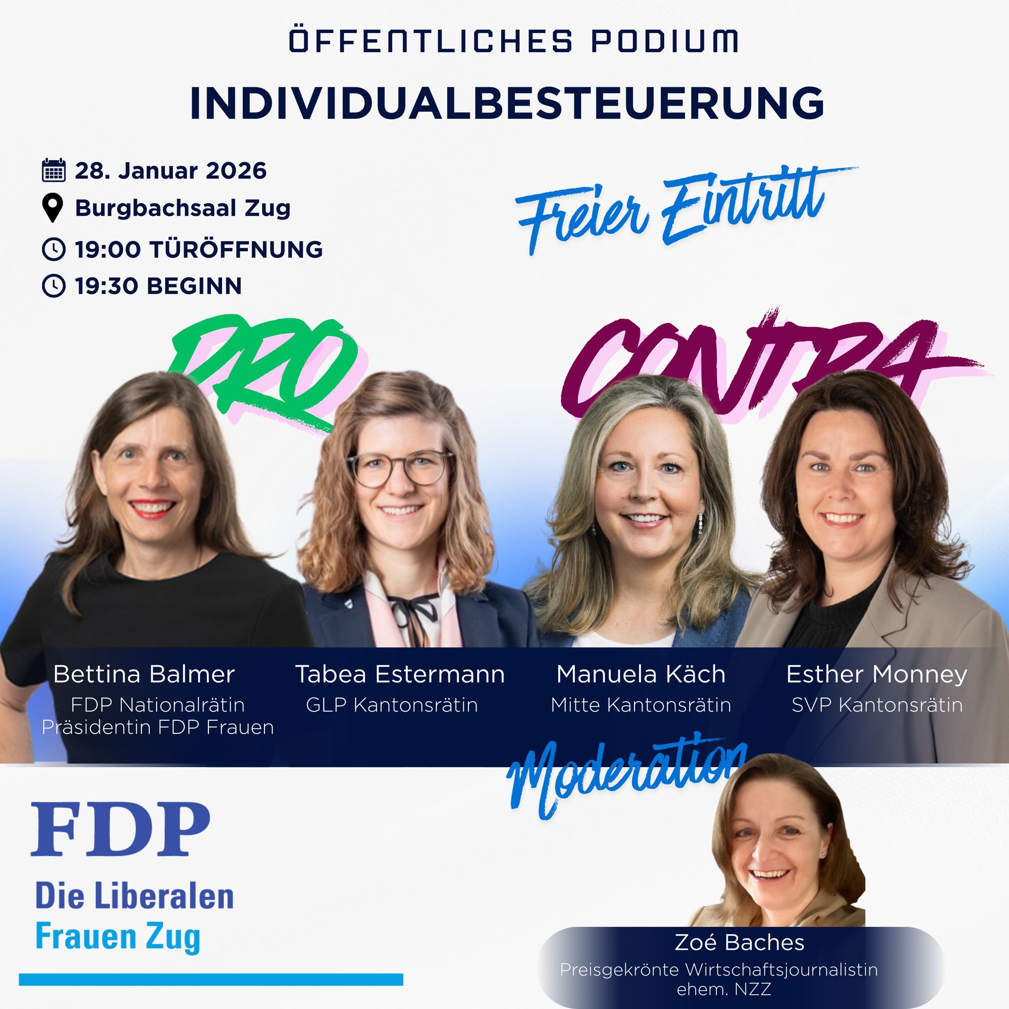 Wir unterstützen und fördern Frauen mit liberalem Gedankengut. Bei Interesse bitte melden unter info@fdpfrauen-zg.ch